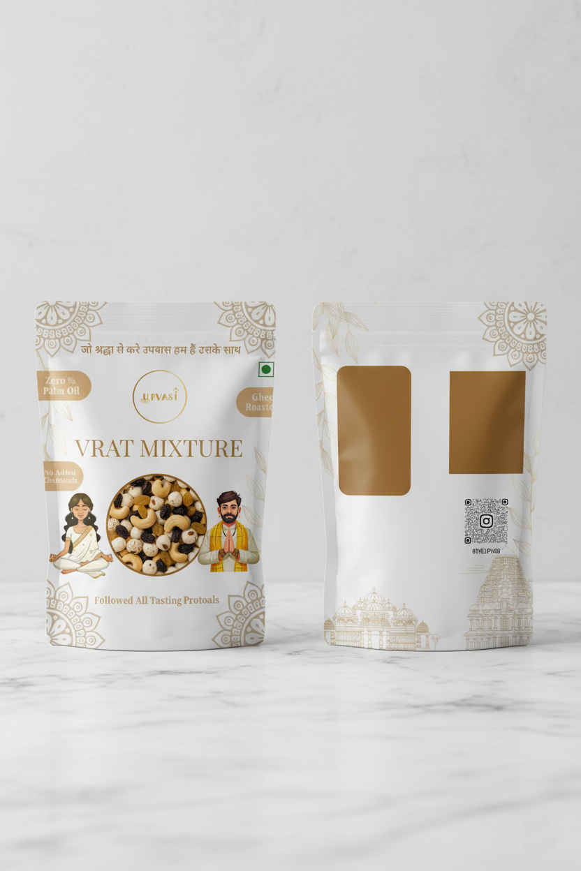 During your Upvas (Vrat) days, your devotion doesn't mean sacrificing flavor. Our Chat Masala Vrat Mixture is a burst of authentic taste, crafted to be the crunchy, zesty, and satisfying snack you've been searching for all while honoring the strictest rules of your fast.